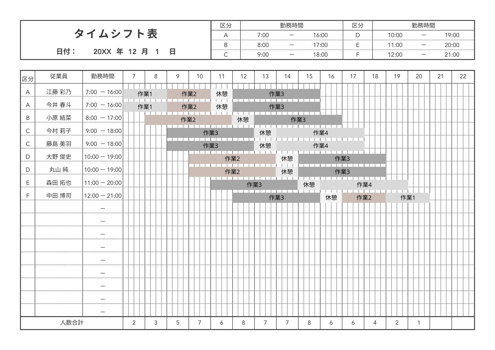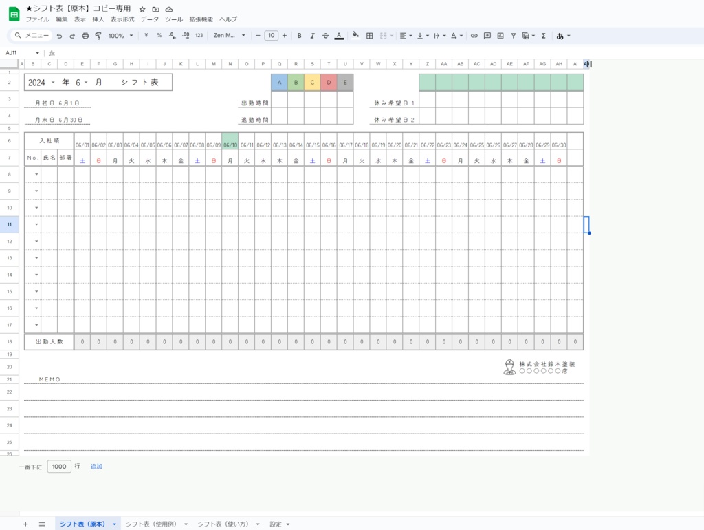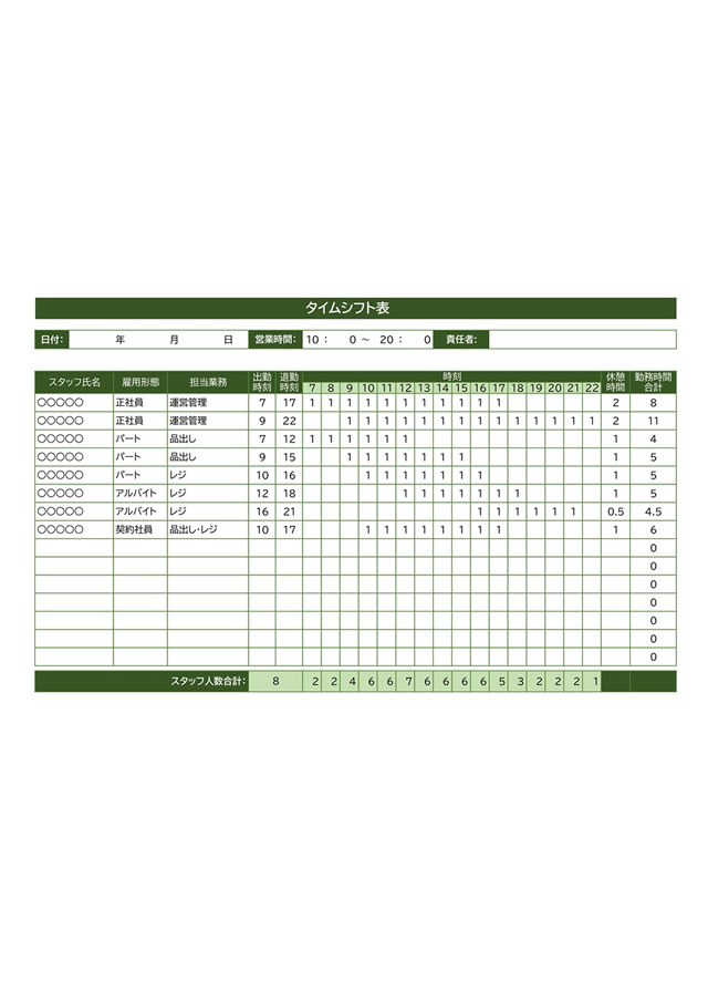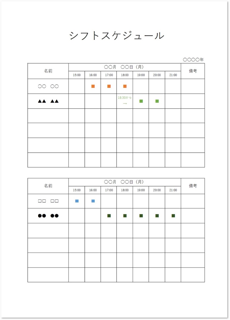 シフト表」の無料テンプレートをダウンロード - 自由が丘スタイル。