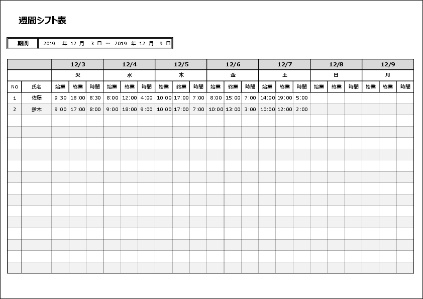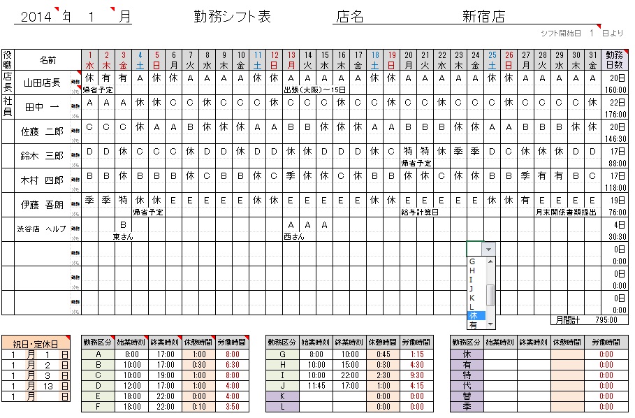 エクセル シフト表テンプレート 雛形無料イラスト素材素材ラボ。