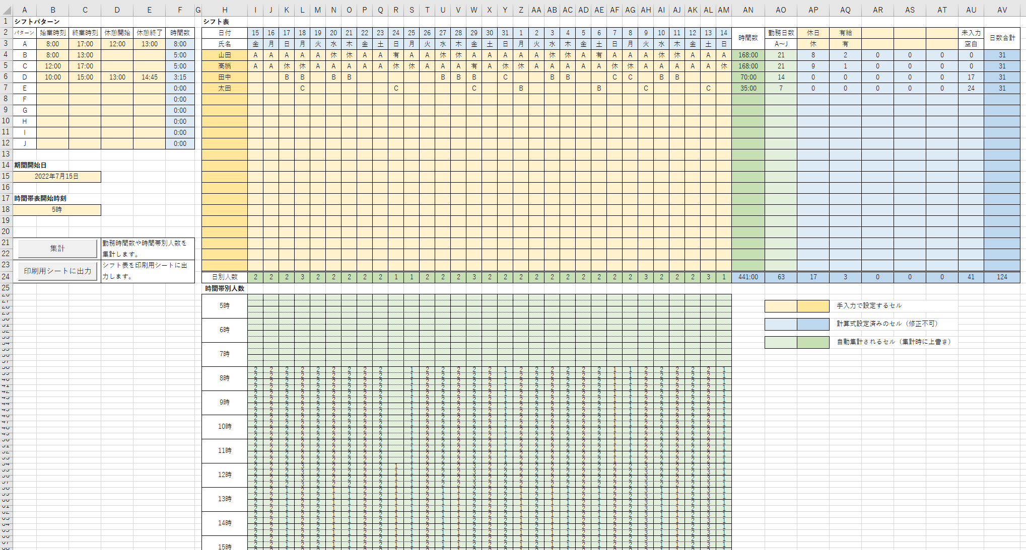 テンプレート無料提供 自分で作ろう!エクセルで作るシフト表、タイムスケジュール表のコツを紹介!勤務シフト作成・シフト管理「お助けマン」。
