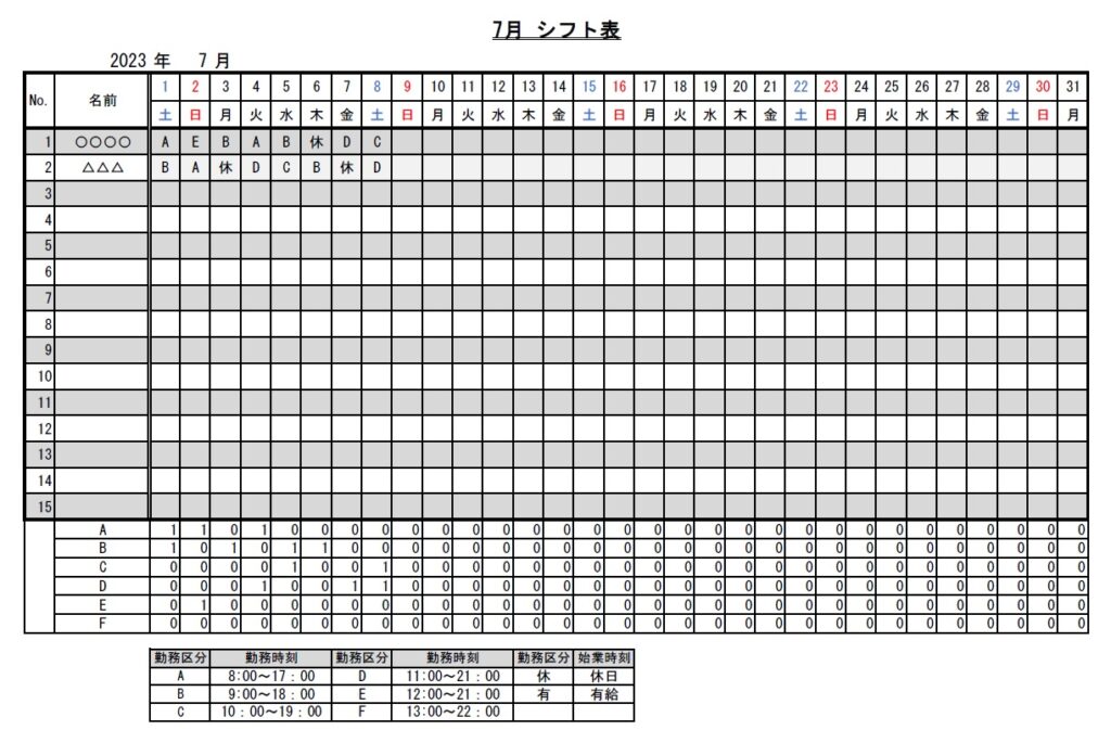 Excel無料で使える見やすいシフト表・勤務表テンプレート7選を紹介! – 業務効率化ガイド業務効率化のノウハウを発信するメディア。