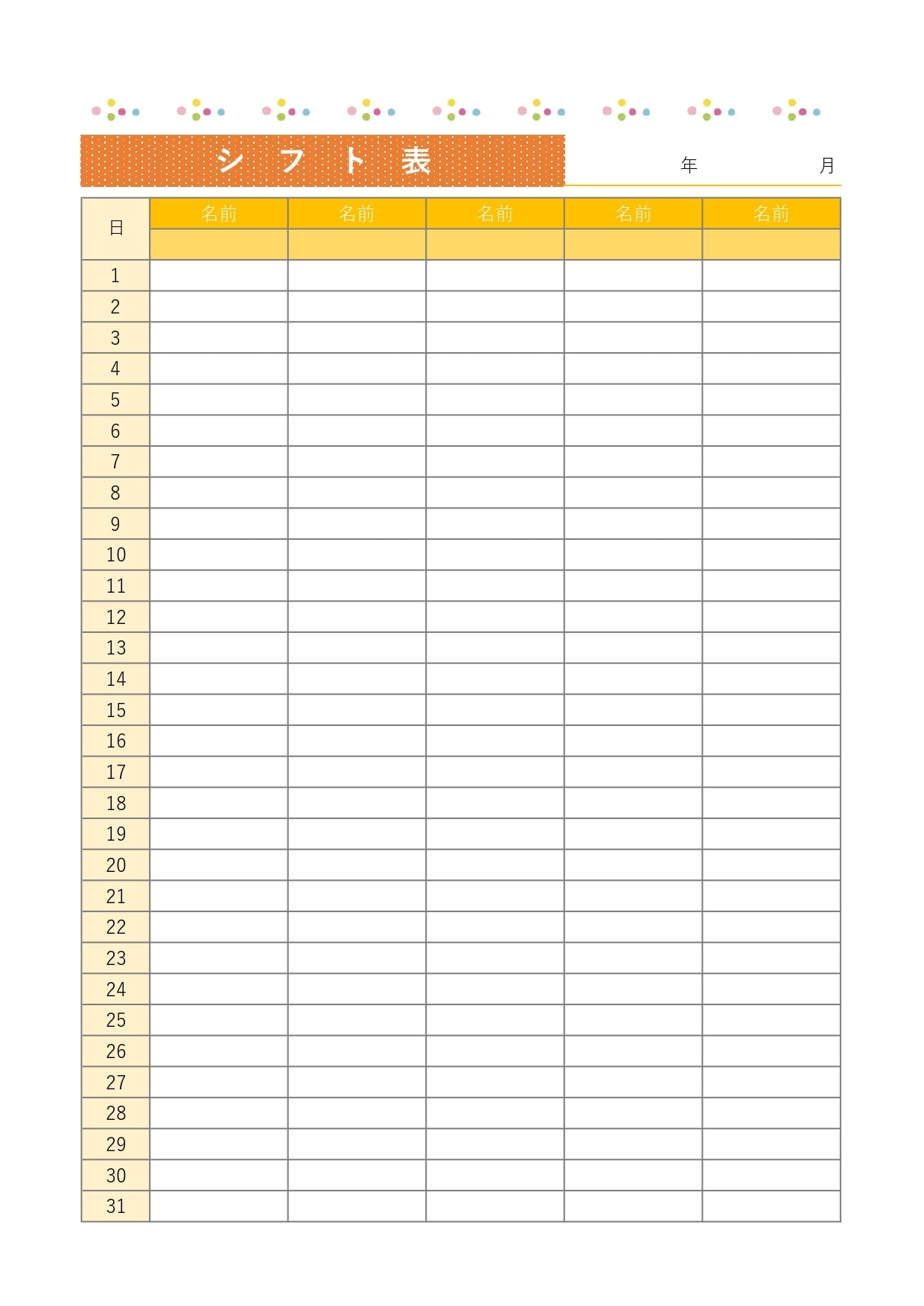 シフト表 1カ月 ・縦・Wordbizocean ビズオーシャン。