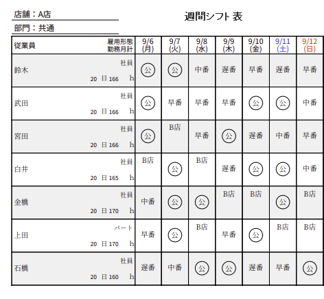 無料41種 シフト表テンプレート Excel・PDF・スプシ 業種別テンプレートあり無料・登録不要ビズ研。