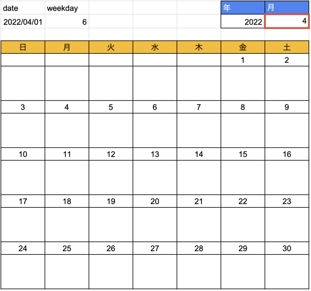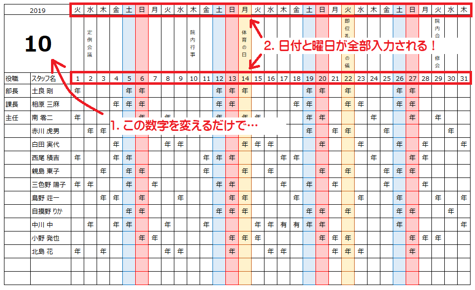 シフト表作り 月日の入力を完全自動化しよう。