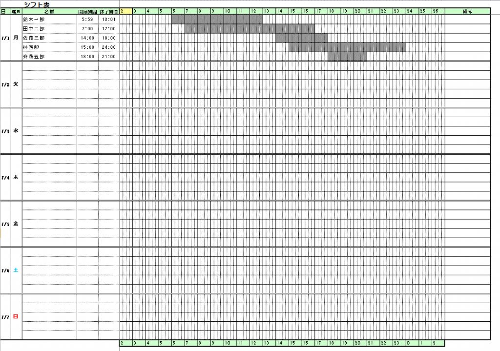 エクセル シフト表テンプレート 雛形1日無料イラスト素材素材ラボ。