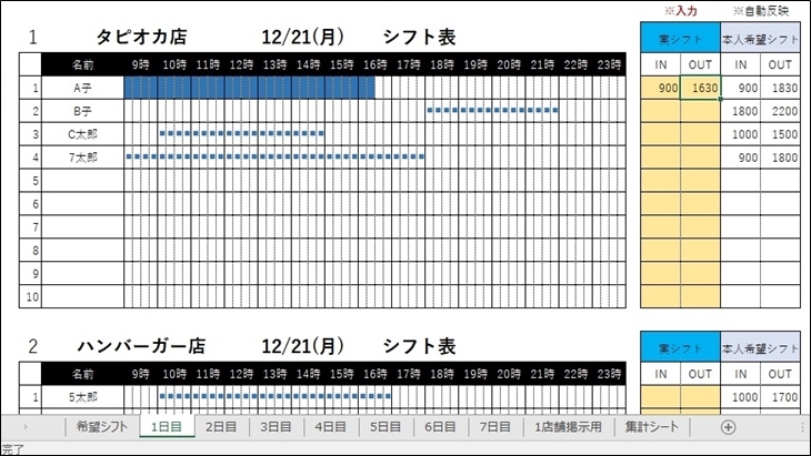 無料Excelテンプレート 複数店舗のシフト表管理・複数店舗シフト希望管理│ エクセルテンプレート 気ままに配信中♪ Byエクセルママ。