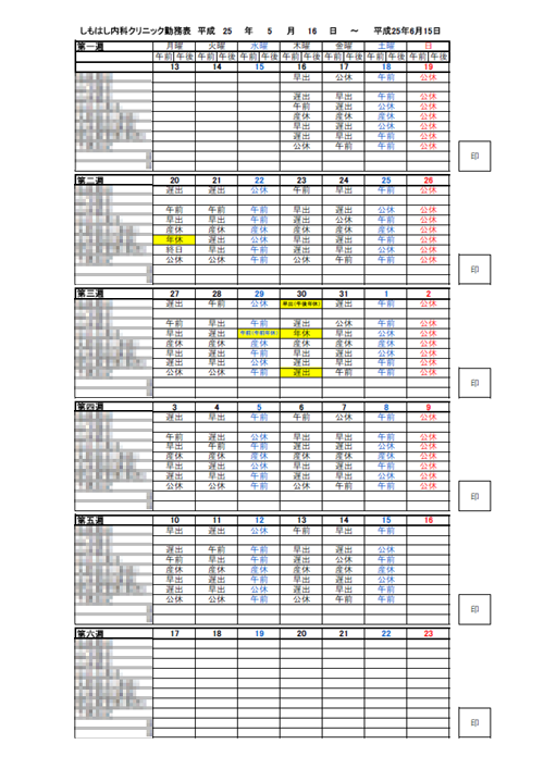 内科向けのシフト表作成システム紹介。