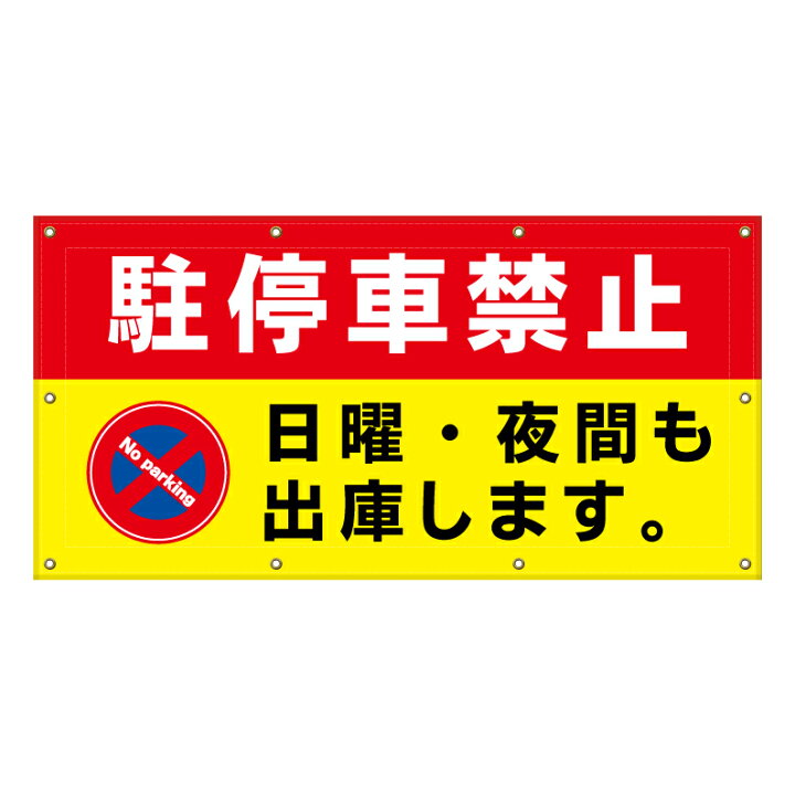 楽天市場駐停車禁止 日曜 夜間も出庫 看板 ※デザイン528番横断幕 ターポリン看板 ターポリン バナー 幕 ショッピングモール 商業施設スーパー 病院 施設 ホテル コンビニ 案内看板 表示 マンション 屋外 ガレージ フェンス 防水 : 京都の老舗看板屋株式会社ラウディ。