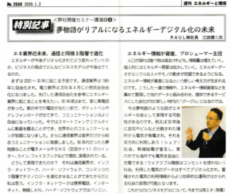 夢物語がリアルになるエネルギーデジタル化の未来」 RAUL株式会社代表 江田健二の講演内容が週刊「エネルギーと環境」に掲載されましたRAUL株式会社プレスリリース配信代行サービス『ドリームニュース』。