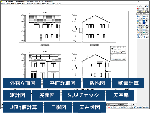 実施設計ソフト 平面詳細図、立面図、展開図、矩計図などを自動作成する建築ソフト。