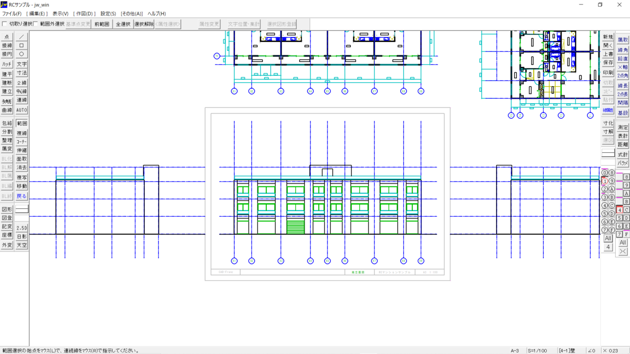 JWCADでRC造立面図Revit・JWCAD・AutoCAD・VectorWorks・SketchUp・FUSION・IJCADマンツーマンレッスン・出張講習の東京CADスクール。