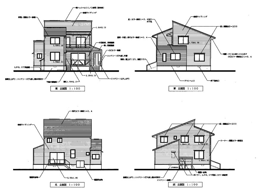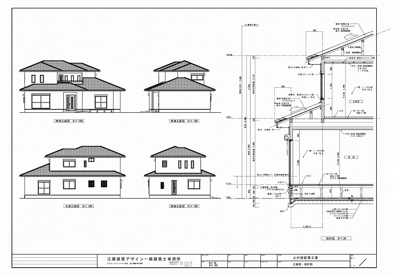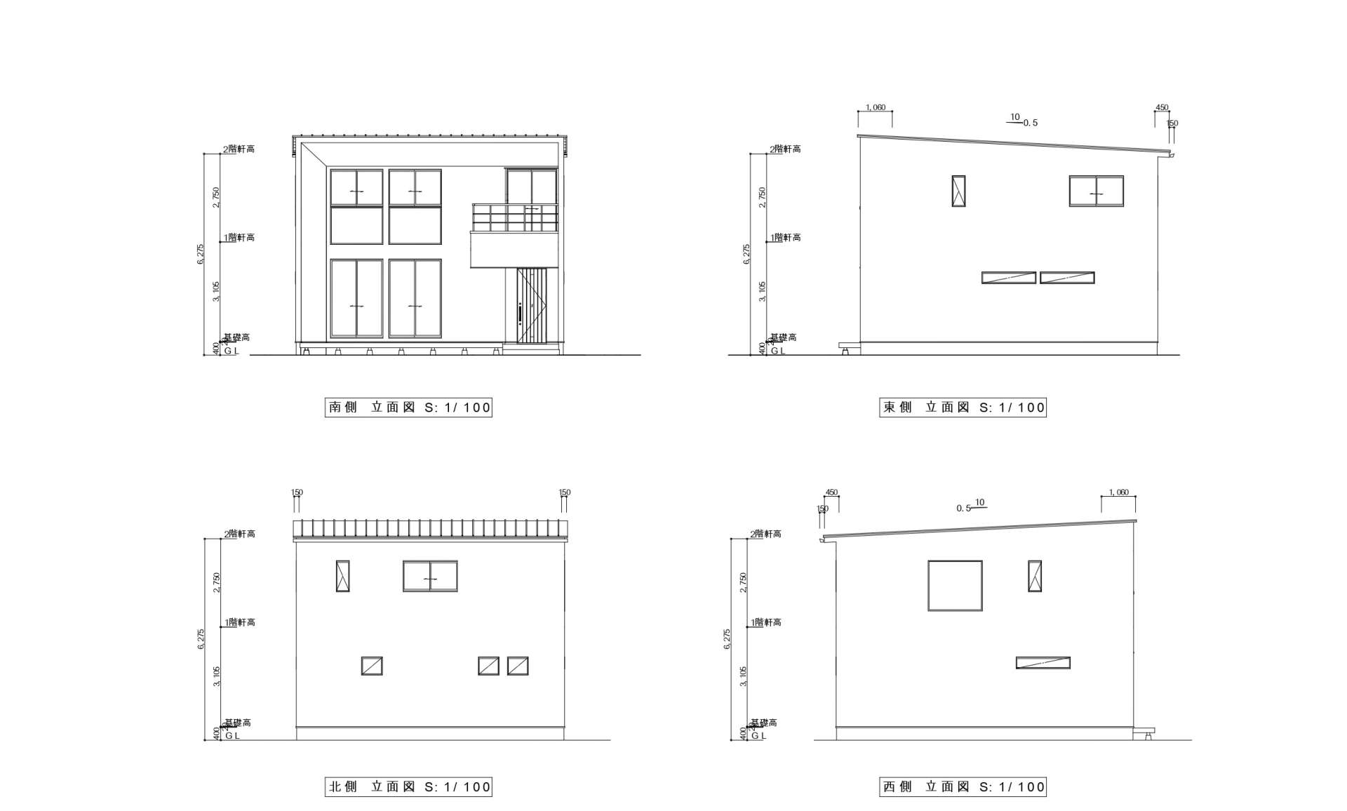 建築 立面図 A1サイズ - 近江企画トレースCAD。
