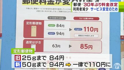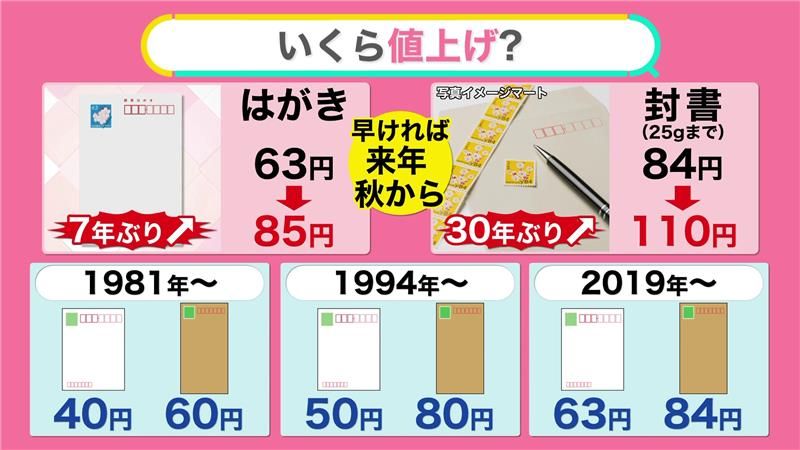 郵便サービス値上げ はがきは63円から85円に。封書は84円から110円に。2024年秋から。