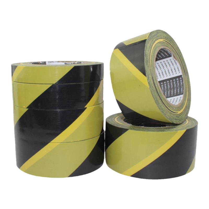 PE英文芯黑黃地板膠高粘防水耐磨抗拉不褪色警示地板膠斑馬線地標貼地板地面標識劃線專用膠帶 長50米。