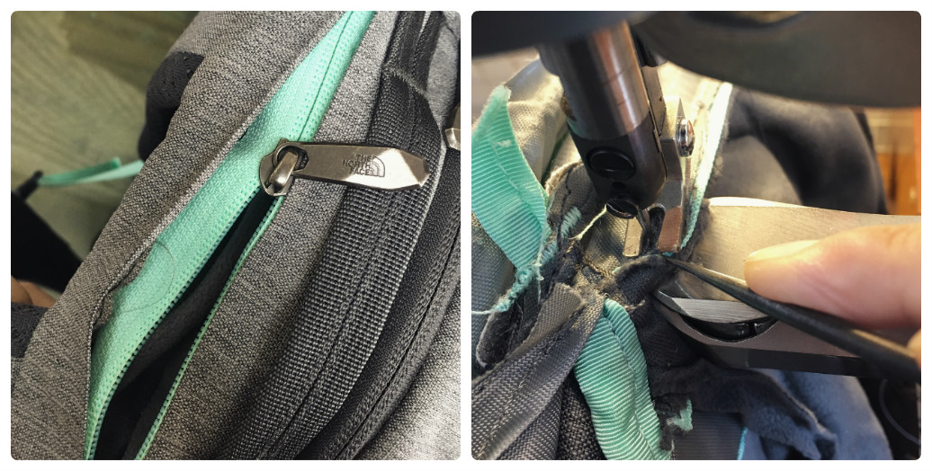 THE NORTH FACE ザ・ノース・フェイス バックパックのファスナースライダー外れを修理大阪、兵庫でゴルフのキャディバッグやスーツケースなどの修理ボンドリペア。
