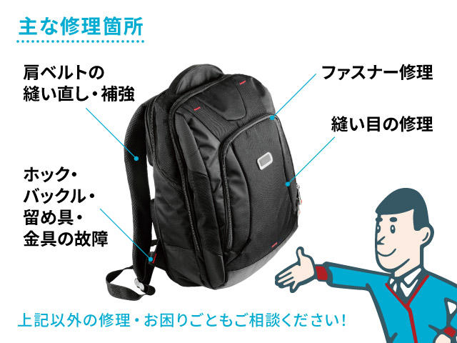リュックサック修理の実績多数!修理例と目安料金をご案内ミスターミニット公式ブログMISTER MINIT。