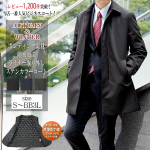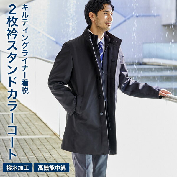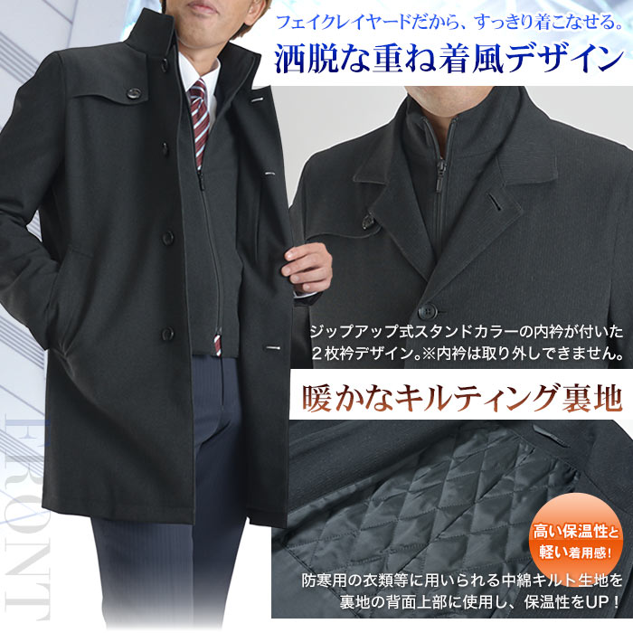 S・3Lサイズ限定コート メンズ ビジネス スタンドカラーコート 2枚衿 秋冬春 レイヤード キルティングライナー着脱 ボンディング素材スリーシーズン 大きいサイズ送料無料スーツスタイルMARUTOMI。