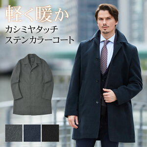 ステンカラーコート メンズ ハーフコート ビジネス カシミヤ混ウール ウール95% カシミヤ5% ブラック チャコール S M L LL 3L コート紳士服通販 メンズスーツ KOKUBO BIZ。