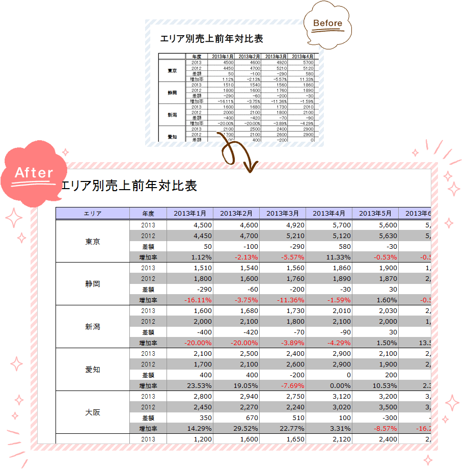 Excel たった3つの方法で、Excelで作った資料が劇的に変化する - まいにちdoda - はたらくヒントをお届け。