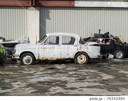 レトロな車の廃車が並ぶ廃車置き場の写真素材76342999- PIXTA。