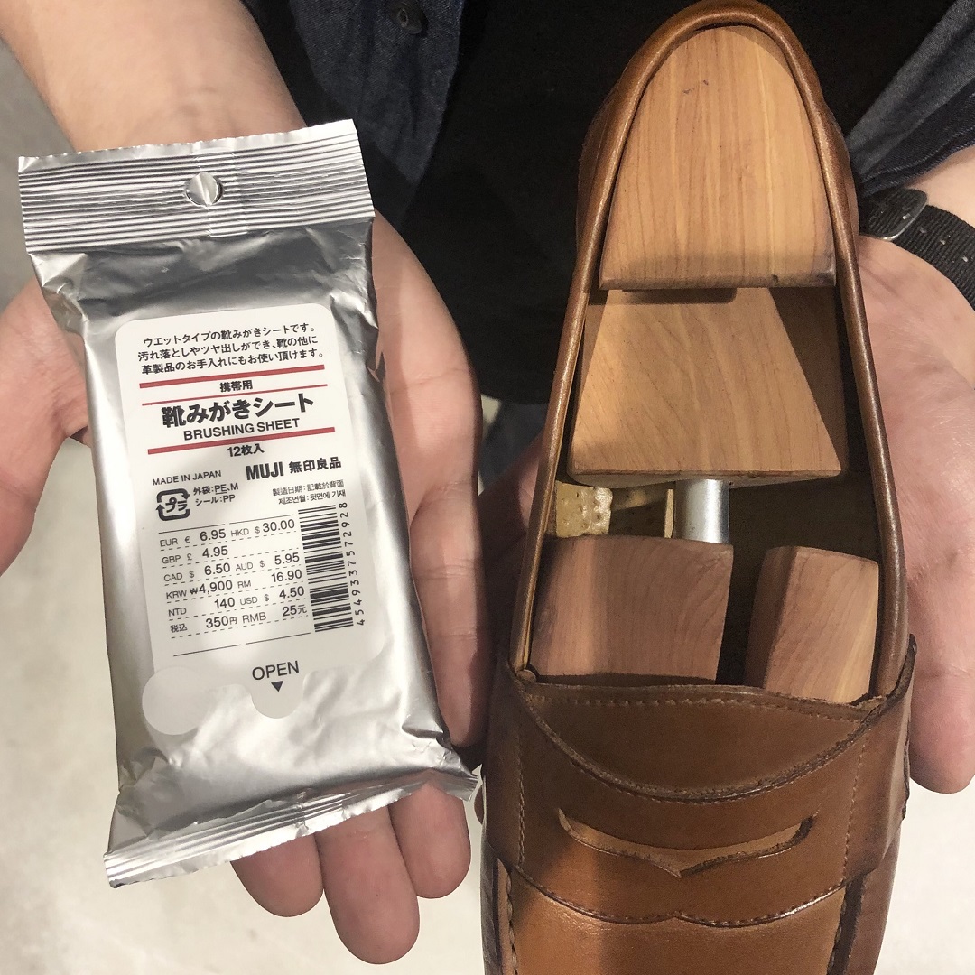 無印の靴磨きセットで革靴のお手入れ!携帯用シートもおすすめ。