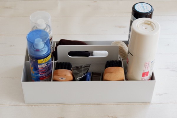 無印良品 シューケア用品の収納。習慣にしたい道具は見た目よく出しっぱなしに。ゆるっとぴたっと。