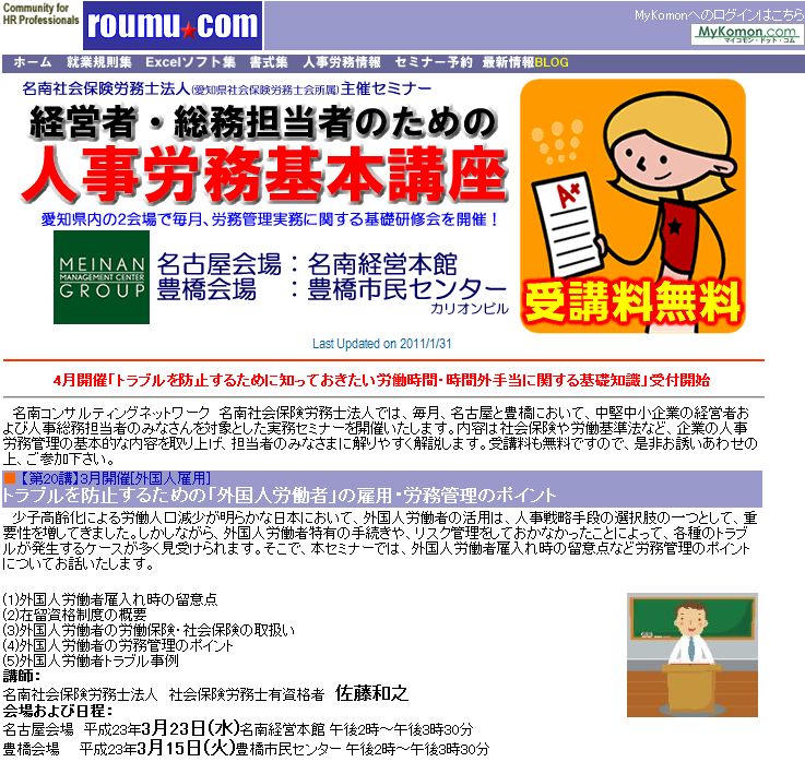 無料セミナー「経営者・総務担当者のための人事労務基本講座」4月コース受付開始労務ドットコム。