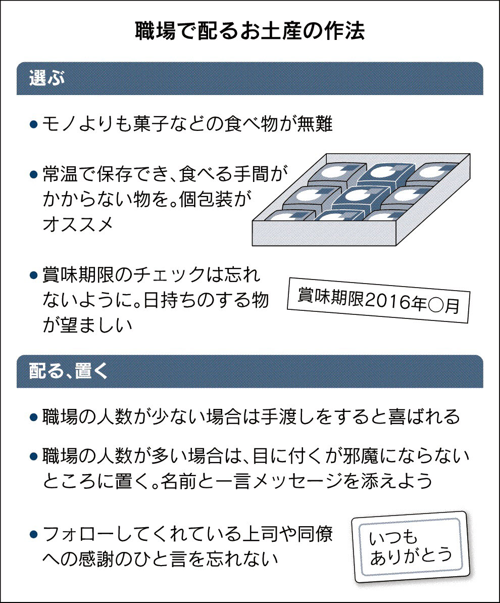 職場へのお土産は配らずに「置くだけ」でOK!お土産選びの一般常識も解説DOMO+ ドーモプラス。