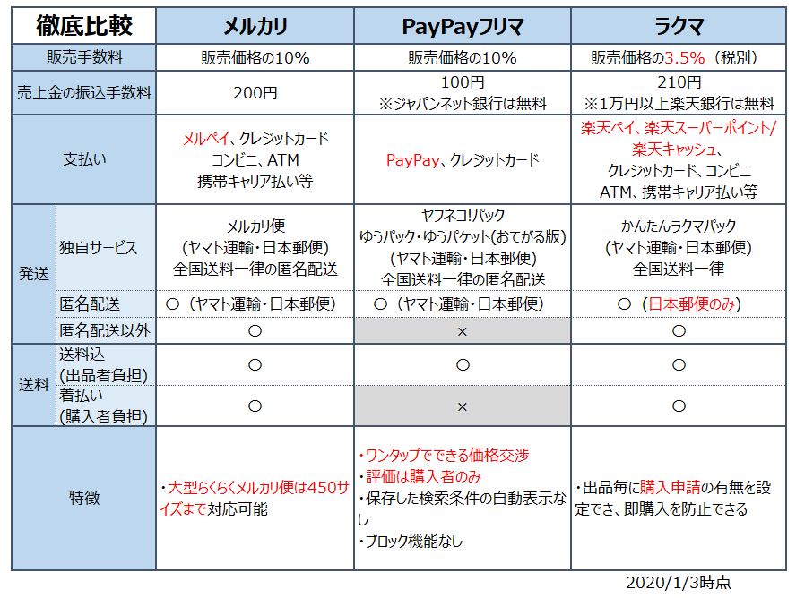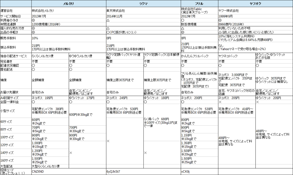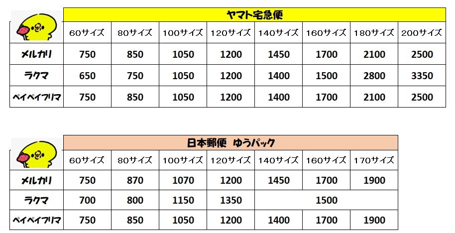 フリマサービスの送料比較早見表&まとめ メルカリ、Yahoo!フリマ&ヤフオク、ラクマuzurea.net。