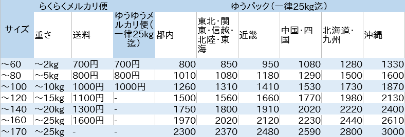 らくらくメルカリ便 メルカリの全国一律送料と他の配送サービスの料金比較表! ゆうゆうメルカリ便- あんりふ。