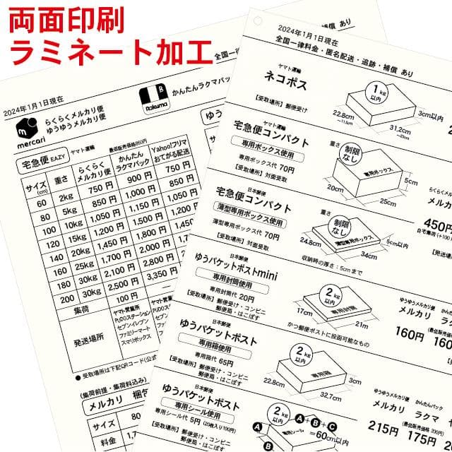 メルカリ&ラクマ送料早見表7枚セット オモテウラ全12ページ- メルカリ。