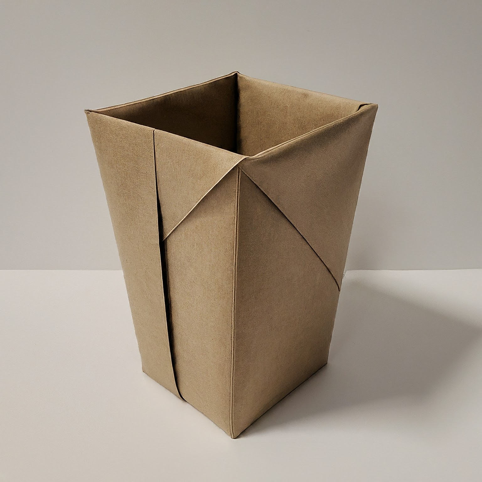 深いゴミ箱はごみを見せないうえに、たっぷり入る。オシャレな紙で作ればなお楽しい! - 「カトー折り🄬」ペーバークラフトで広げるエコ。
