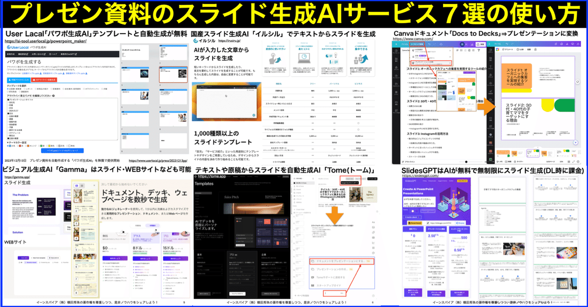 プレゼン資料のスライド生成AIサービス7選と専用GPTs使い方 新潟県 長岡造形大学 情報リテラシー論 講師 横田秀珠。