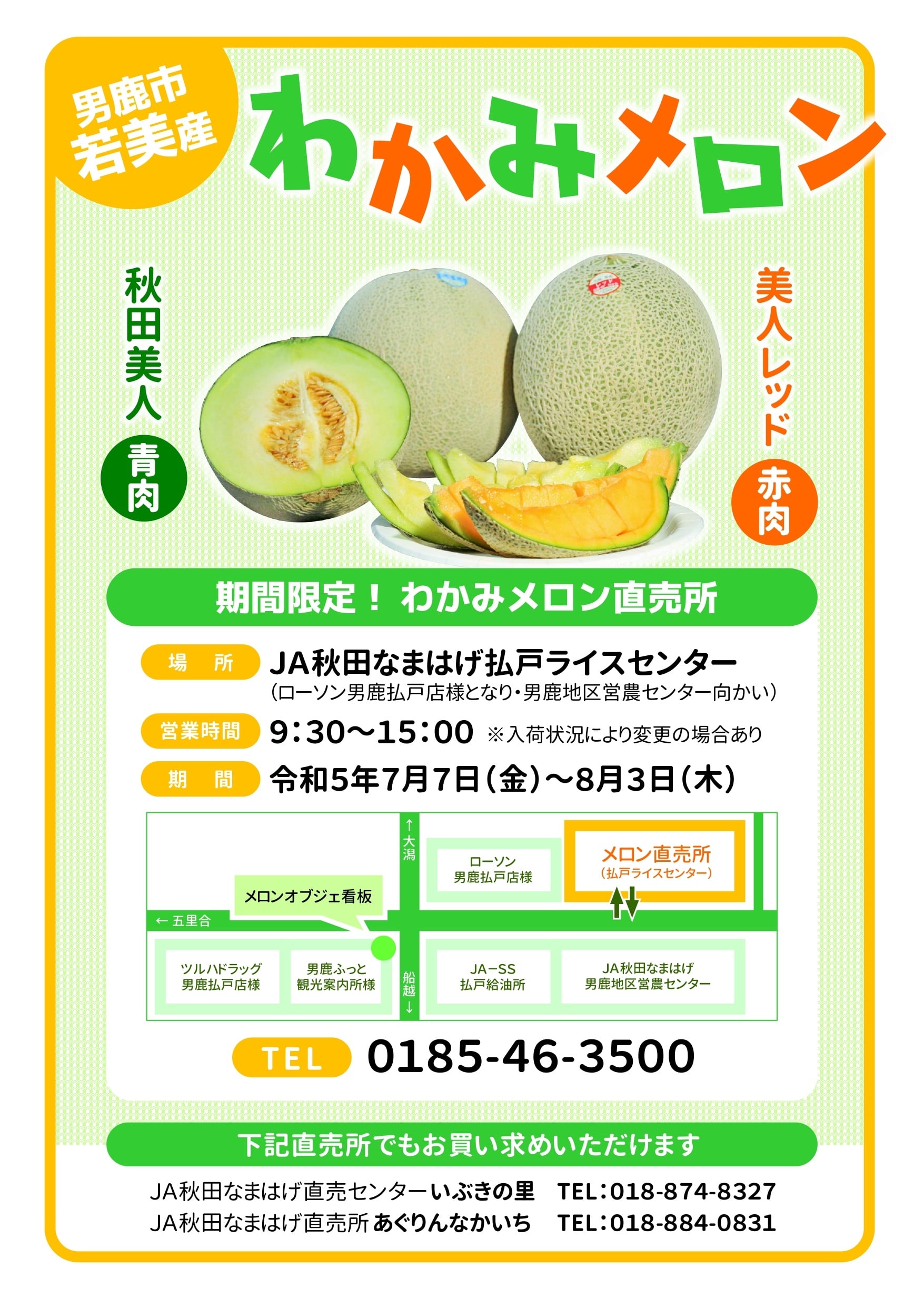 8 3 木 まで わかみメロン直売所が期間限定オープン!お中元やご家庭用にどうぞ。