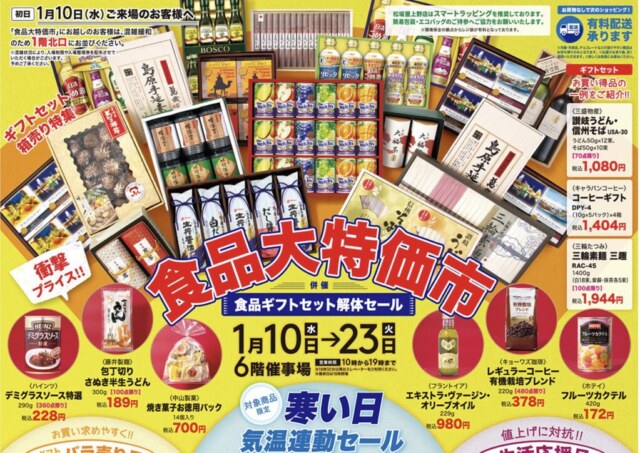 初売り後もまだまだお得!約15万点のお買い得食品が大集結!食品大特価市&食品ギフトセット解体セール株式会社大丸松坂屋百貨店のプレスリリース。