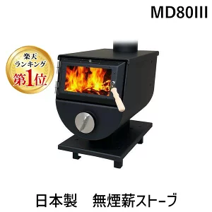 楽天市場無煙薪ストーブ MOKI 日本製 薪ストーブ MD80IV 鋼板製 料理も楽しめる 省エネ 薪ストーブ 国産 無煙 高温燃焼 暖炉暖房器具 長持ち \プレゼント付: あるまま。