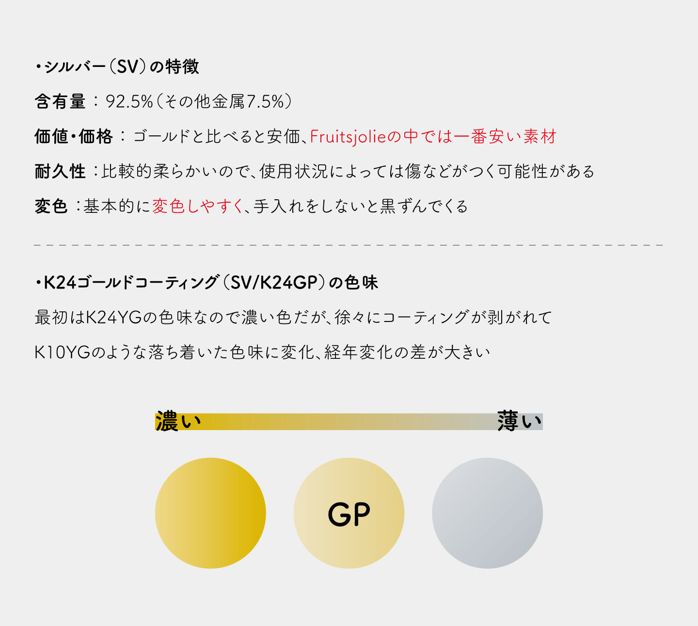 シルバーとゴールド素材の特徴と選び方 – Fruitsjolie。
