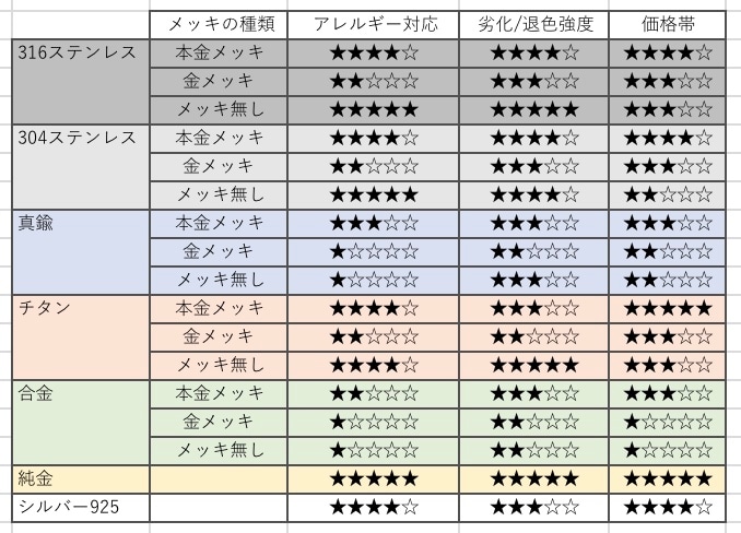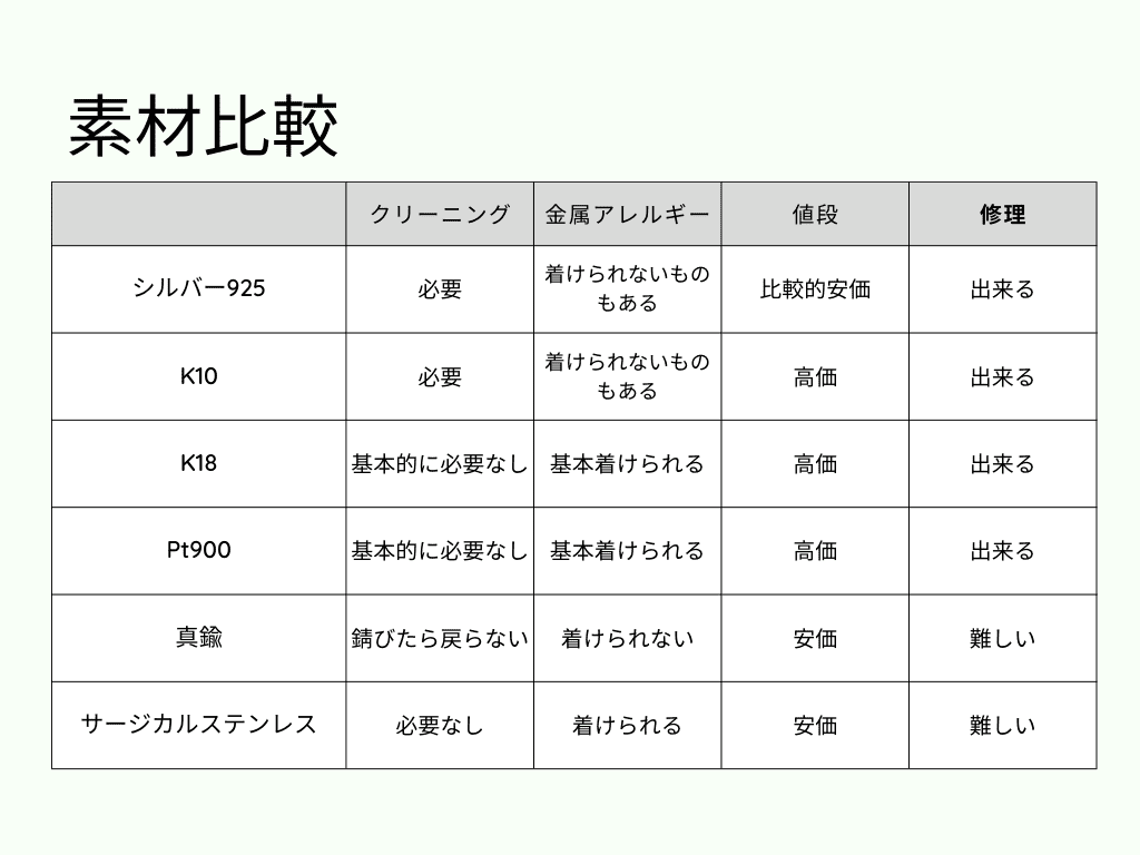 チタン工房キムラWEB本店徹底解説 アクセサリーの素材は何があるの。