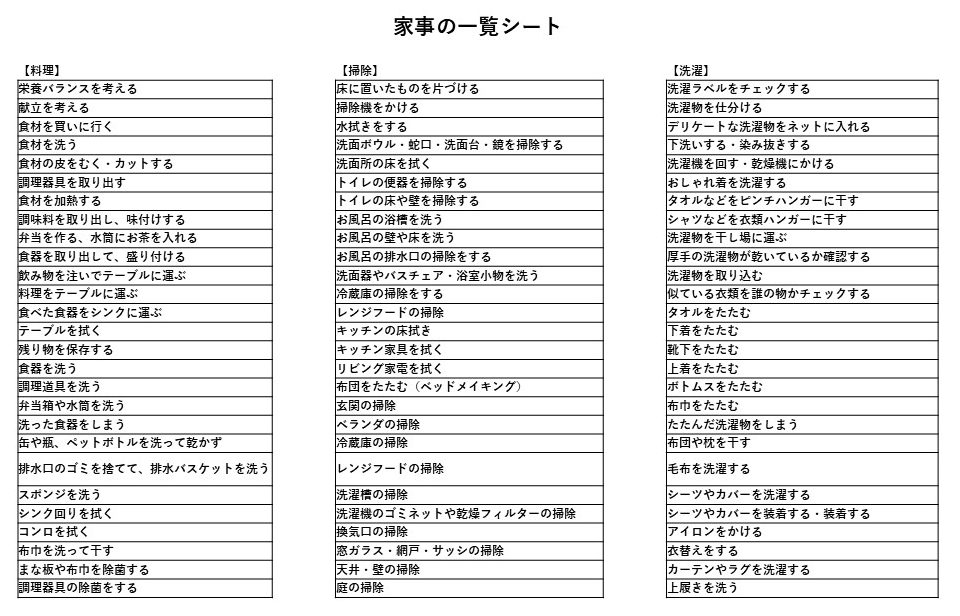 共家事 家事を「見える化」して、家事分担を見直そう!福井県ホームページ。