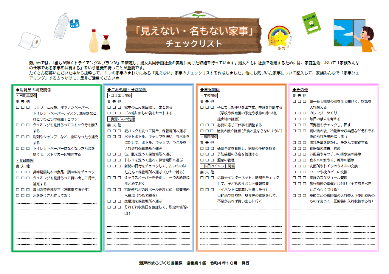 令和4年度 「見えない・名もない家事」募集結果瀬戸市。