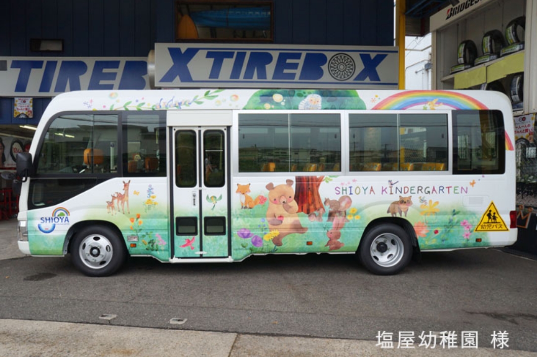 幼稚園の送迎バスをラッピングした事例をご紹介します。 幼稚園バスは「幼児バスマーク」を貼ることが義務化されています。 弊社ではラッピングに関する法律等もフォローしたうえでデザインを作成しています。法人向けのカーラッピングをお考えならぜひ一度ご相談。