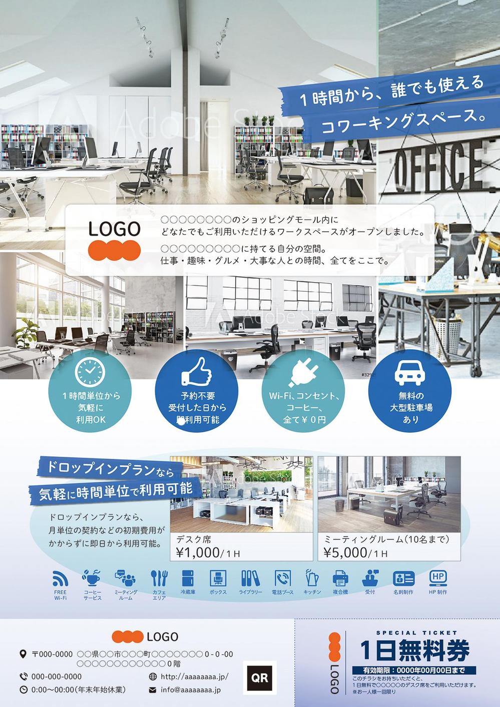 コワーキングスペースのチラシ_オモテ - ランサーズ。