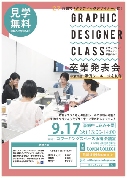 9 17開催 3名のデザイナーさんが誕生!グラフィックデザイナー平日クラス卒業発表会コワーキングスペース永福。