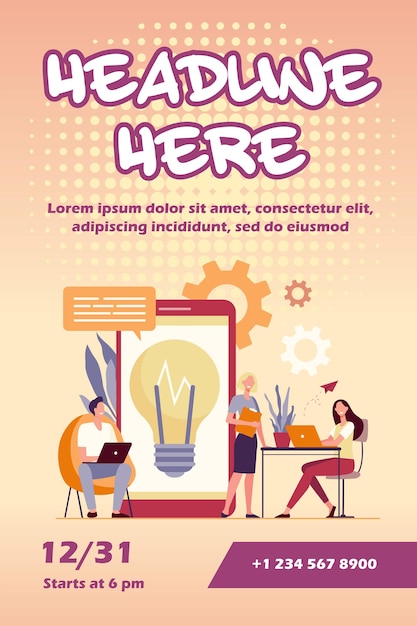 コワーキングスペースチラシテンプレートで会うビジネスマン無料ベクトル素材。
