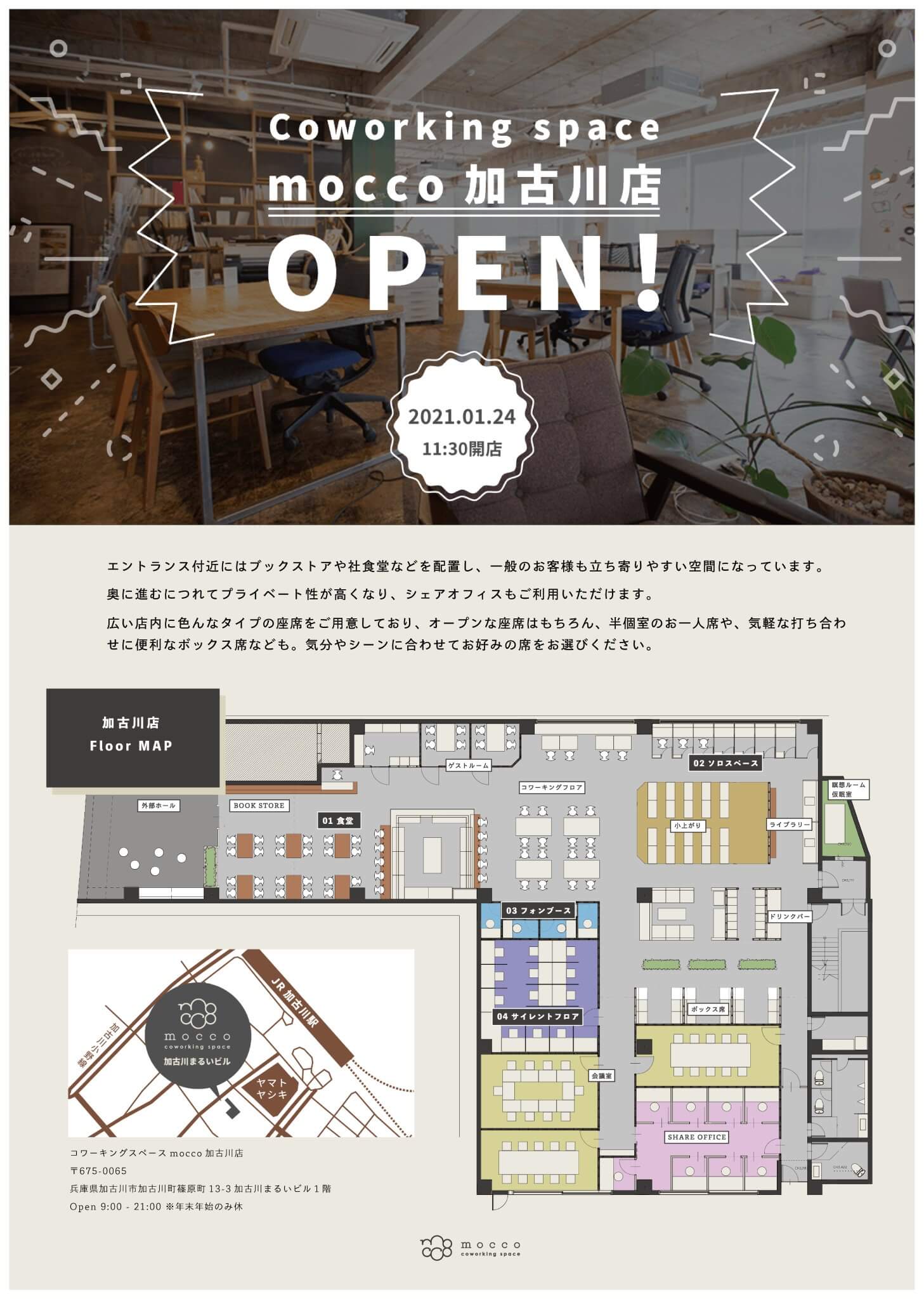 開店 コワーキングスペースmocco加古川店が2021年1月24日加古川駅前にオープン! ベルデモール商店街かこがわノート。