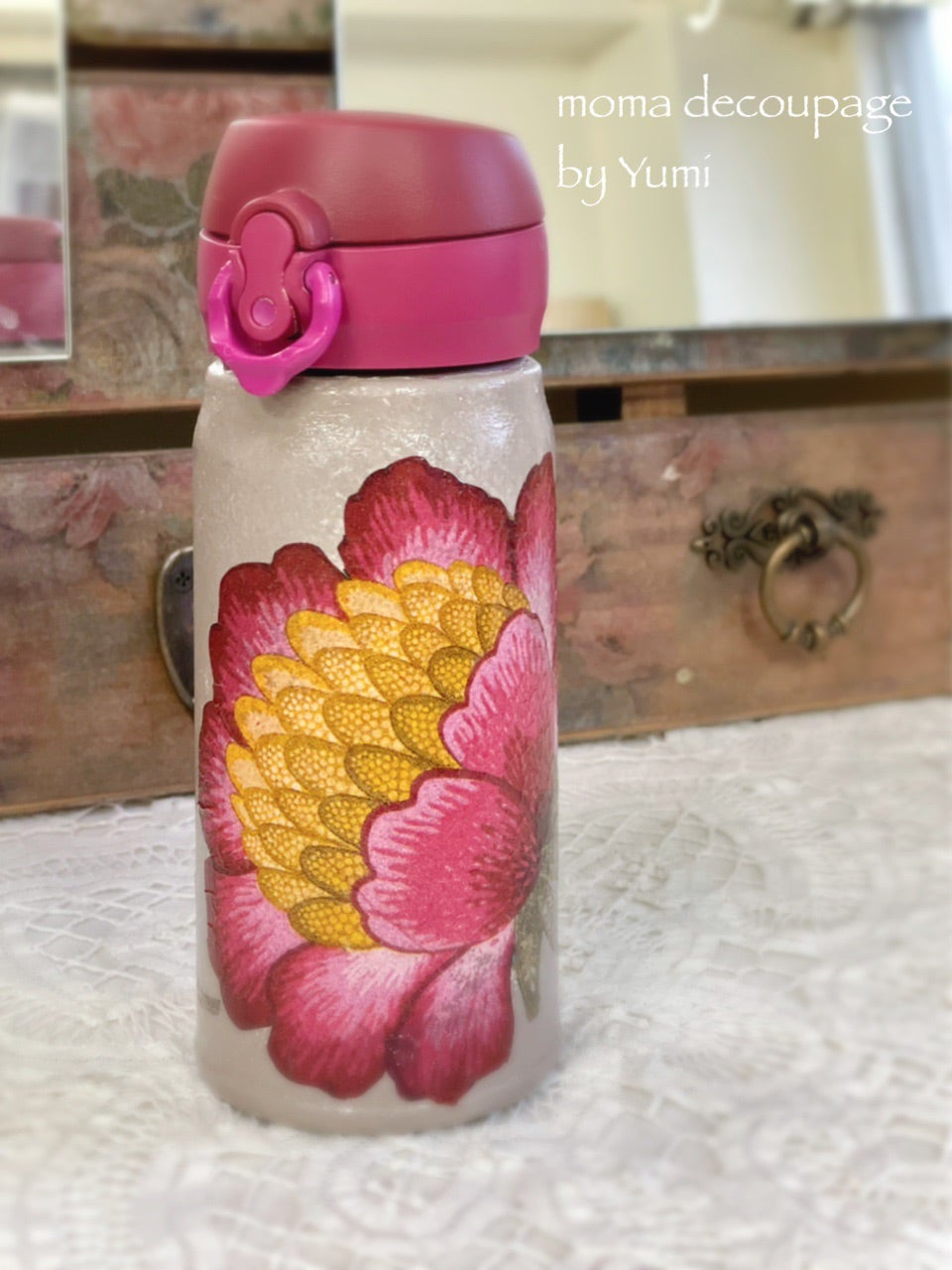 デコパージュで水筒をリメイク*生徒様の2作品moma decoupage by Yumi のブログ☆デコパージュ教室 文京区。
