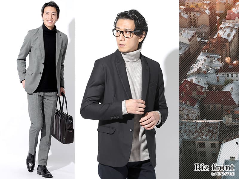 ビジネスカジュアルでもかっこいい!タートルネックとジャケット・スーツコーデビジネス・オフィス・スマートカジュアル専門通販。