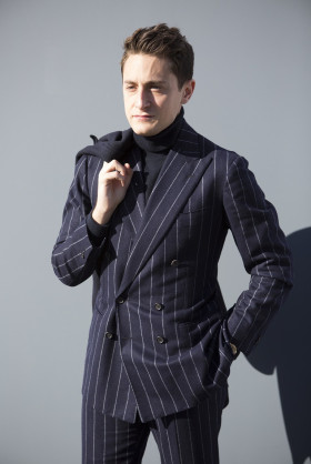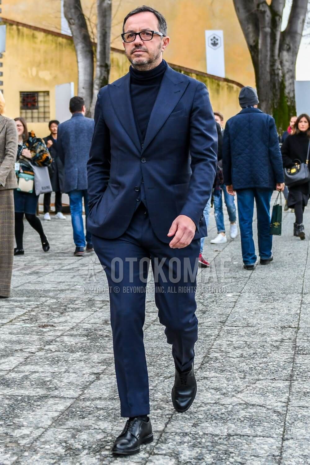 ネイビーウールスーツ×ブラックタートルネックセーターbiz16-17aw_2598。
