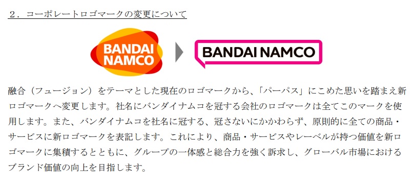 バンダイナムコグループがロゴ変更!「パーパス」を制定し2022年4月に新ロゴへ!2021年10月1日- エキサイトニュース。