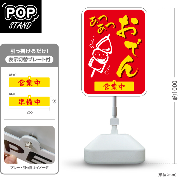 スタンド看板 表示切替プレート付 おでん 薄茶 あつあつ おいしい 営業中 準備中 Y-30111-1 : あぴまちYahoo!店 - 通販 -Yahoo!ショッピング。