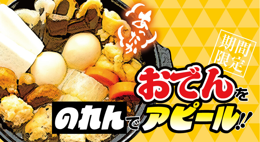 おでんののれん季節限定だからこそ、販促が重要です。